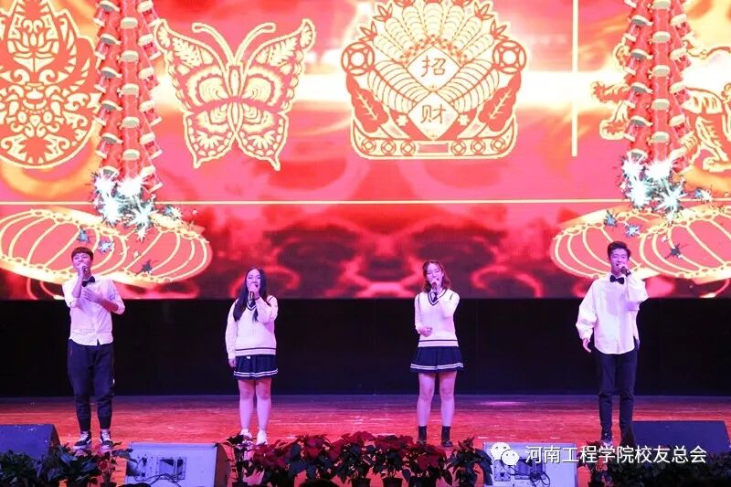 启动仪式结束后,返校校友与大学生艺术团的同学们在龙湖校区大学生活动中心,共同组织举办了“致青春,再出发”—河南工程学院校友联欢会。50多岁的老校友们在联欢会中的表演激情似火,魅力四射;在校大学生青春洋溢,活力满满,让观众们沉醉其中。这场在网上点击率高达1.6万次的联欢,既展现了传承母校精神的共鸣,又有共同感恩母校的深厚情感,为在校大学生们送上了一道精美的文化大餐。