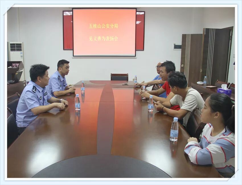 五桂山分局收到该警情后,立即指令路面警力参与救援。救援结束后,公安分局值班领导特别邀请郭沛楚和程泽安两名热心群众到公安分局,当面对他们见义勇为行为表达由衷的感谢和高度的赞扬,并为他们送上一封表扬信!