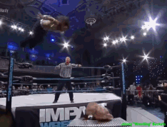 450度飞扑也是比较常见的高飞技,在空中旋转450度砸向对手。这一招干脆利落又帅气,难度系数也不低,是许多高飞大神们都爱用的招式,不过,最让人记忆犹新的,或许还是PJ·布莱克(前WWE选手贾斯汀·加百利)的450度飞扑吧!