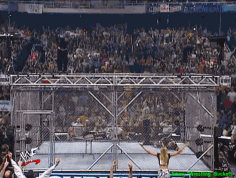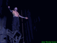 不过,谢恩也有砸中对手的时候!在2001年《爆裂震撼》PPV上,谢恩和大秀哥打了一场最后站立者赛,最后,谢恩从15米高的高架上跳了下去,砸中了大秀哥!看到这一幕,估计在场的所有观众,以及电脑前的每一位观众,都替谢恩捏一把冷汗!