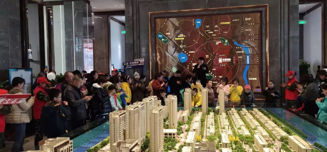 进入售楼处,小朋友和家长们用手指组成笑脸,点亮打卡地!