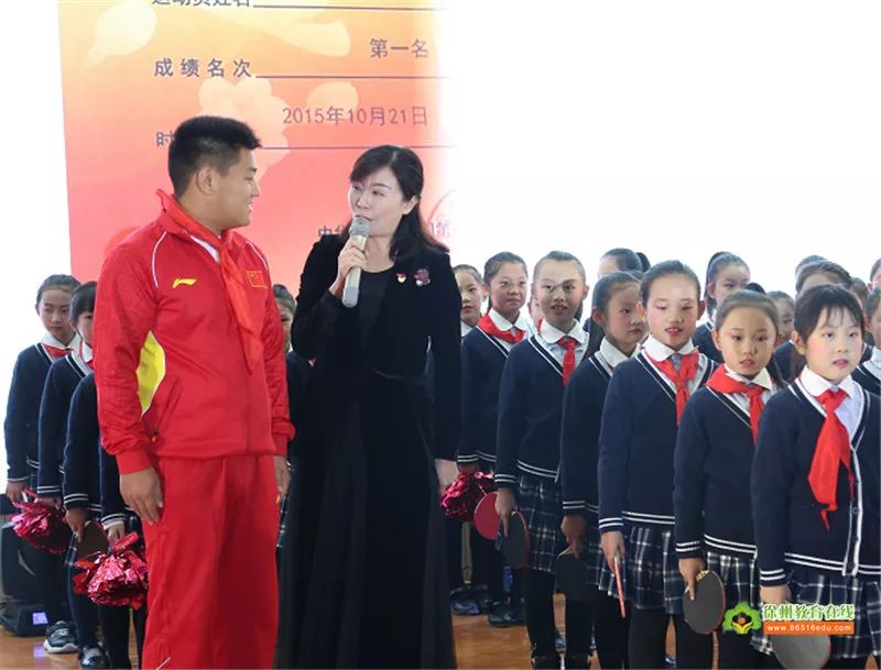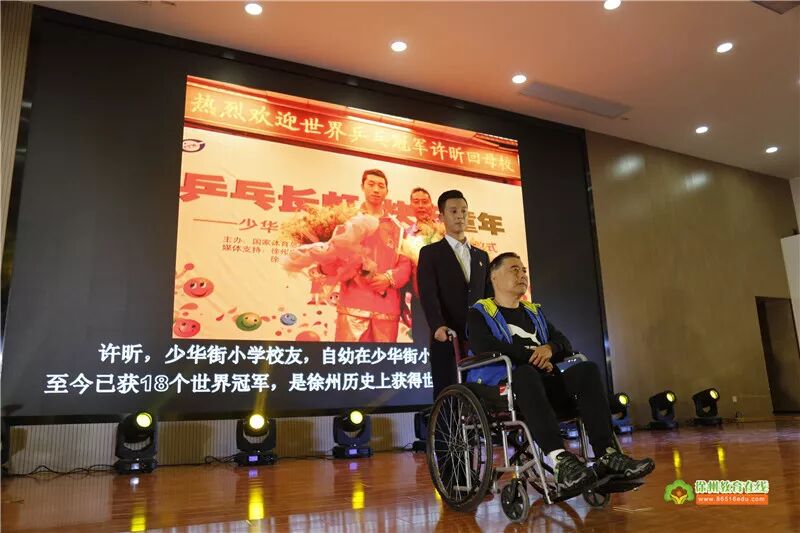 主持人还现场邀请了世界冠军许昕的启蒙教练杨德华老师上台和与观众见面。杨老师的爱徒,乒乓世界冠军许昕通过大屏幕,为母校发来祝贺,并祝百年少华越办越好!