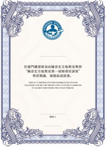4.含金量高的师资证书,考核通过核法师资证,面试通过后并可成为陳彥宏吉他教室签约师资。