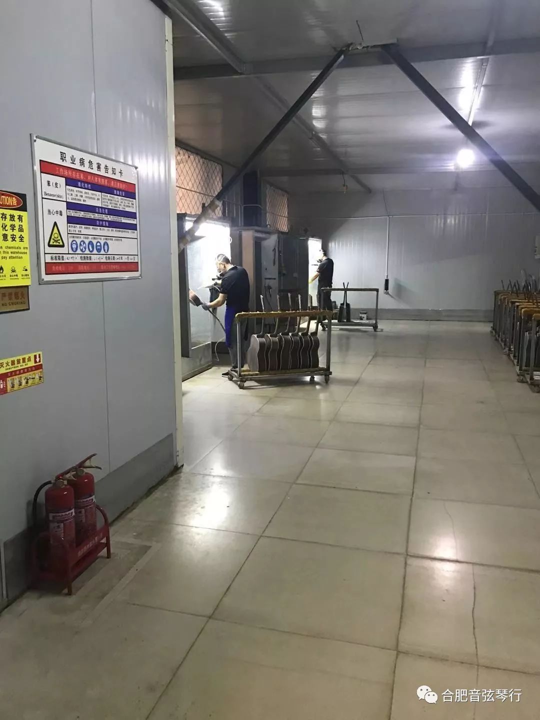 喷漆是制作吉他非常重要的环节,漆房的整洁和环保不光保证了员工的健康,也可以提高吉他的喷漆效果和精细度,水洗式喷漆台的道理和“除尘河”是一样的,漆被吸入水底后,定期清理。风机巨大的吸力加上水洗式喷漆装备完全杜绝了对人体有害的油漆的味道。