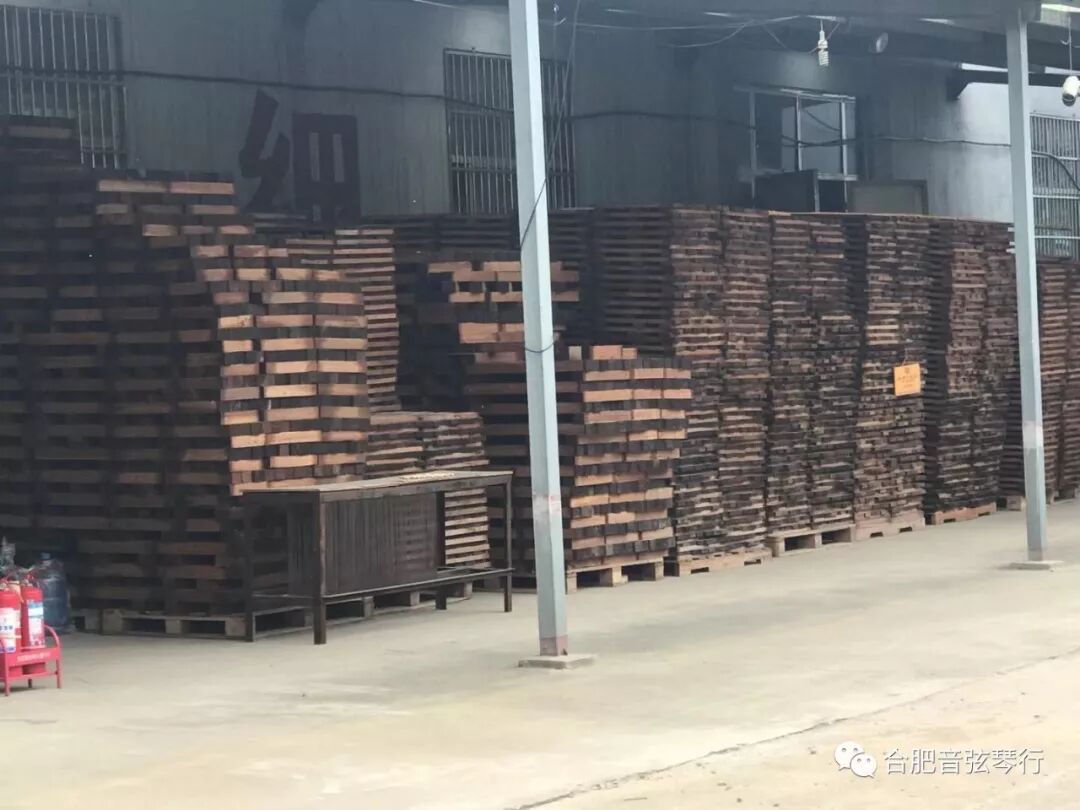 森氏吉他用几千万的资金保证大量充足的木料存储,整齐摆放并进行长时间的自然风干。自然风干的周期为三年以上。通过除湿机和空调保持恒温恒湿的存放环境。