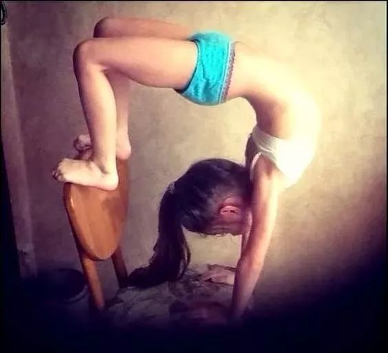 她从小就开始练体操,一字马、倒立、下腰、转体各种高难度动作不再话下。