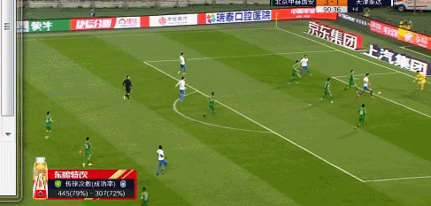 上半场补时阶段,国安围攻泰达城池,李可拿球突然直塞禁区,巴坎布插上形成单刀面对杜佳,但巴坎布最后的推射居然未能命中目标,不过此球巴坎布已经越位在先,国安带着1-0的领先进入下半场。