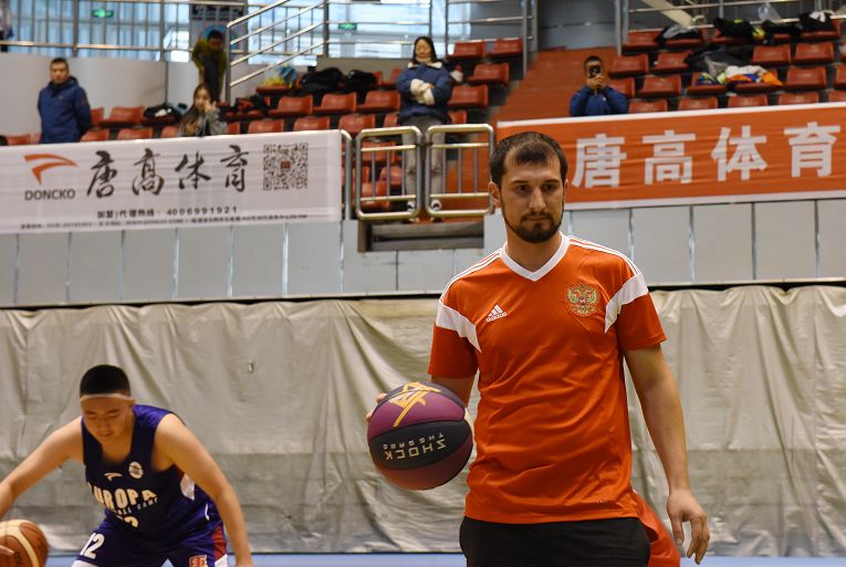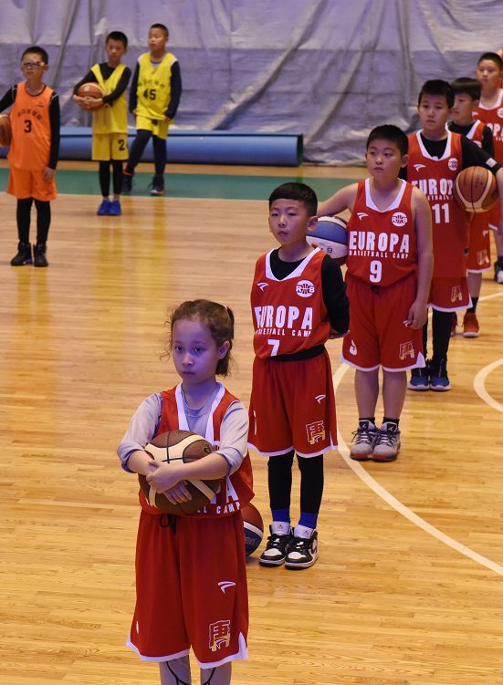 开营仪式上,俄罗斯教练带领青少年篮球学员进行了训练。