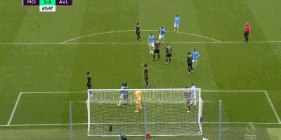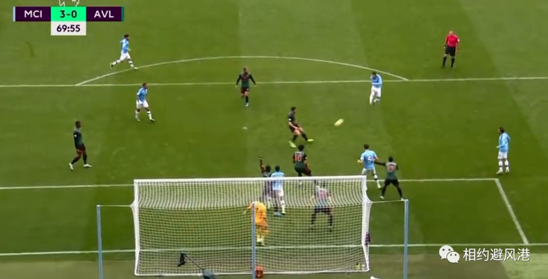 第65分钟,德布劳内前场左侧起球传中,皮球弹地后飞入球门,阿斯顿维拉球员投诉处于越位位置的斯特林碰到了皮球,当值主裁通过VAR判定进球有效,曼城扩大比分,2-0!