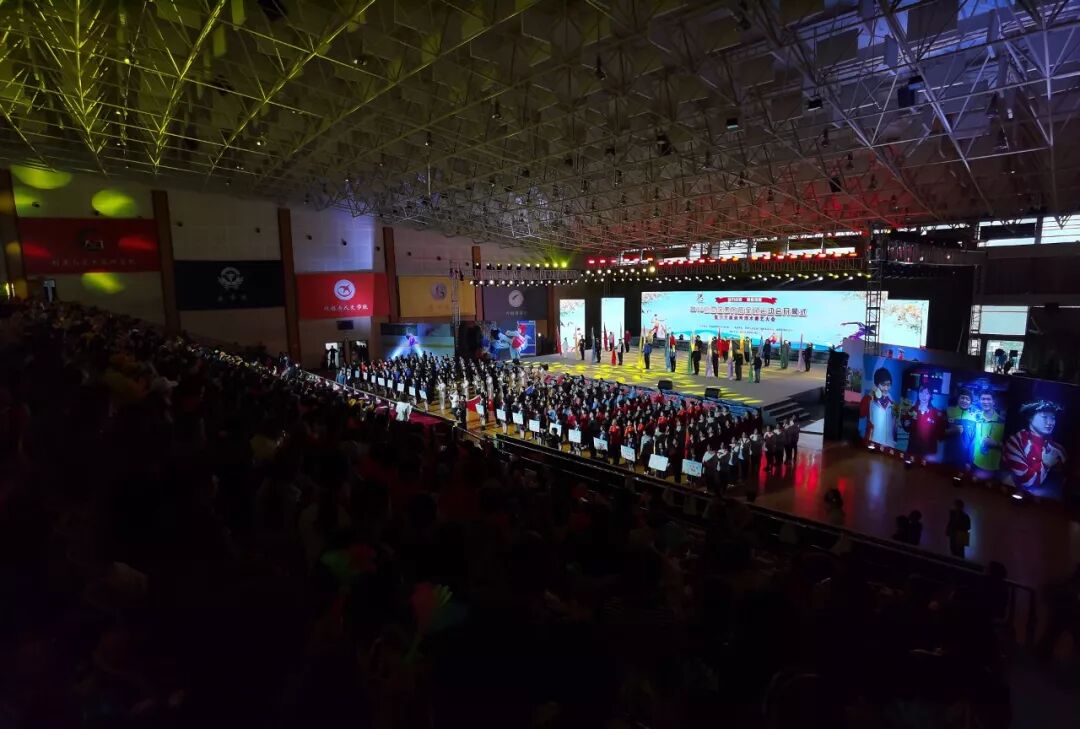 欢腾的开场舞《运河奔竞》结束后,20支代表队的举旗手,手握彩旗跃入舞台齐手挥舞;运动员代表身着统一的服装,迈着整齐的步伐,有序入场。