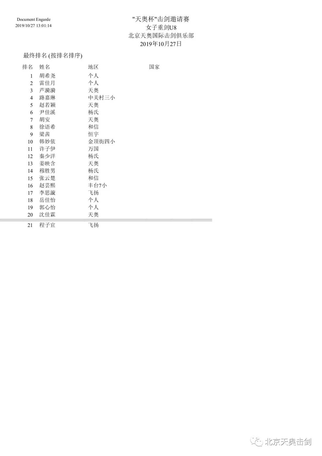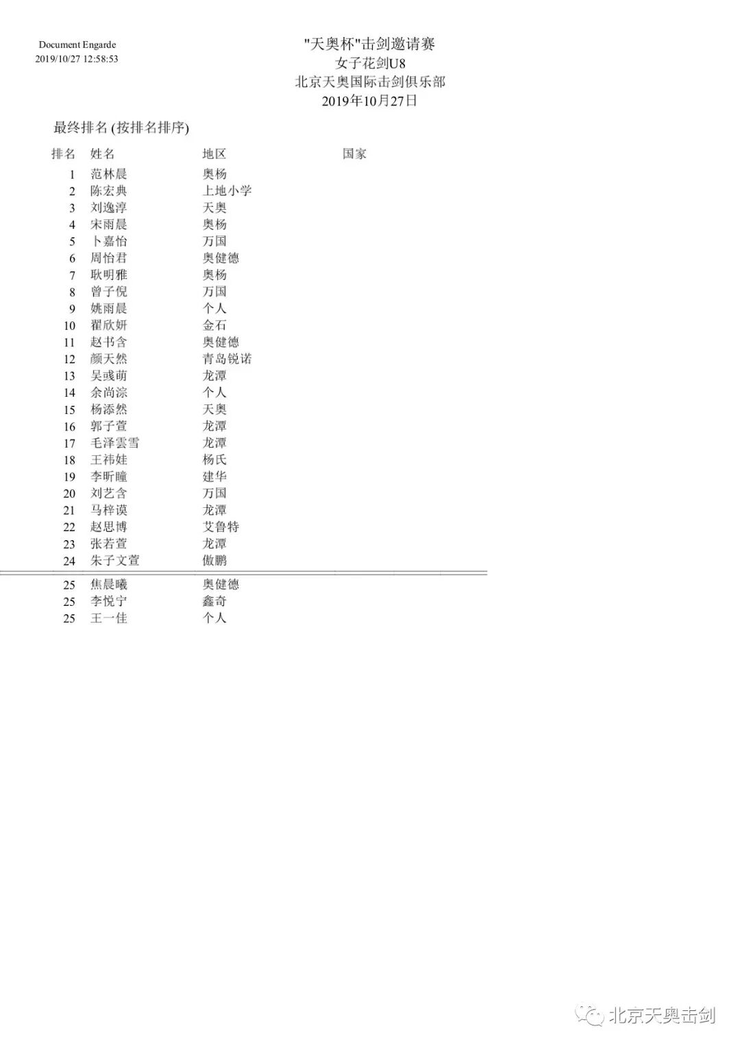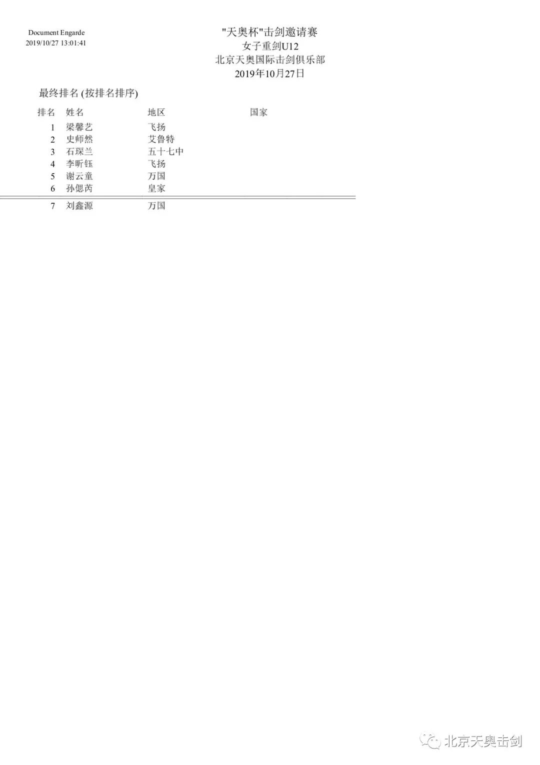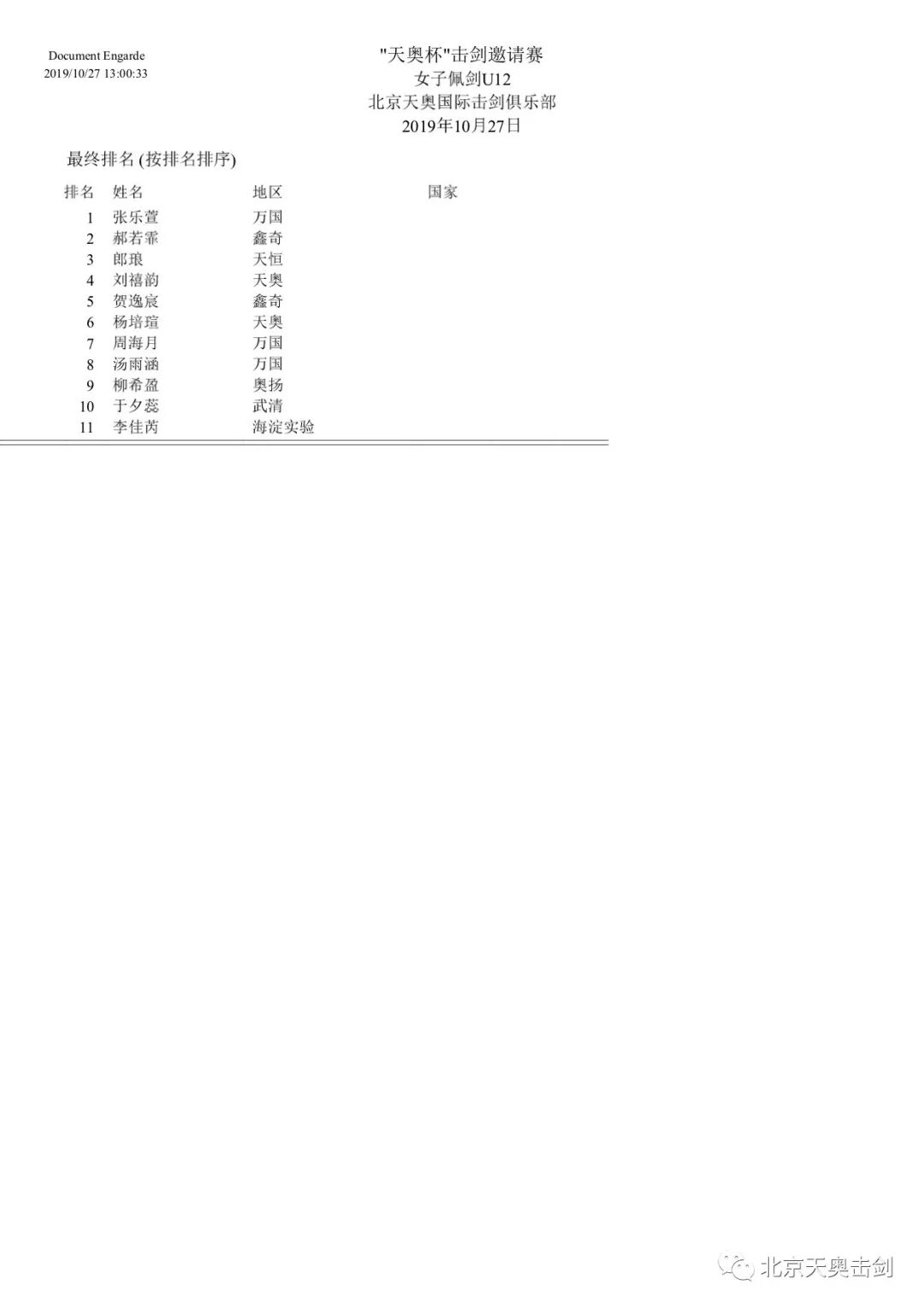 请惠存:“天奥杯”击剑邀请赛10月27日(第二日)最终成绩表