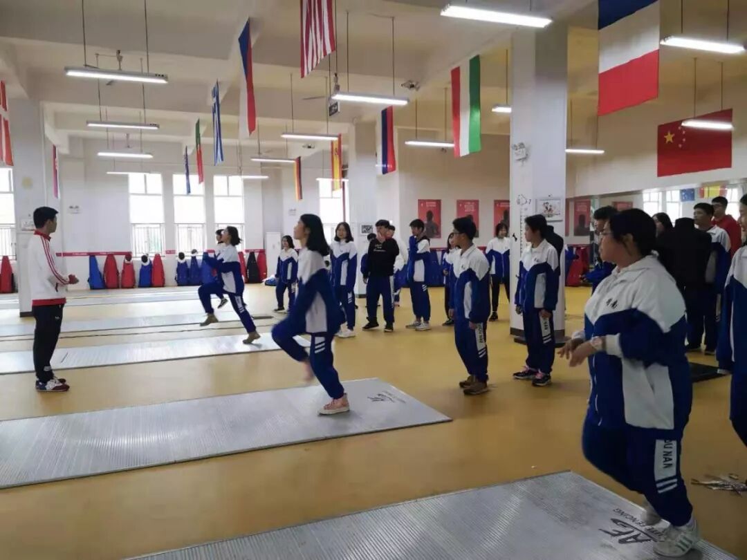 25日下午,天空正下着淅淅沥沥的小雨,但丝毫不影响同学们的兴奋和期待。到达晨熙湘一击剑俱乐部后,教练热情的接待了国际部的同学们,并且向同学们普及了击剑运动的相关知识和注意事项,紧接着就开始了体育运动前的热身活动啦!