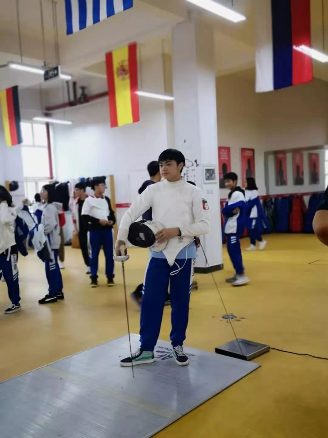 做完各项准备活动后,接下来就到了激动人心的时候了——击剑比赛!此次比赛采用的剑种为:重剑,比赛方式为:个人赛。