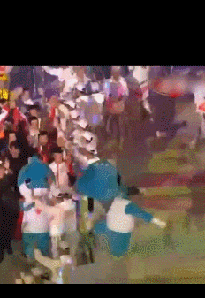 比赛开始不久,一只兵兵就遭遇“飞来横祸”兴奋的观众直接把兵兵公主抱抱举高高,一瞬间,头飞了!