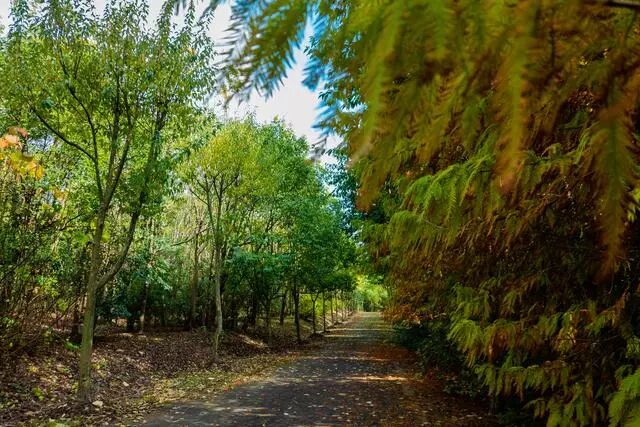 刚到公园,就被映入眼帘那郁郁葱葱的水杉树给震撼到了。处处皆是景,仿佛走入了电影中才有的画面。
