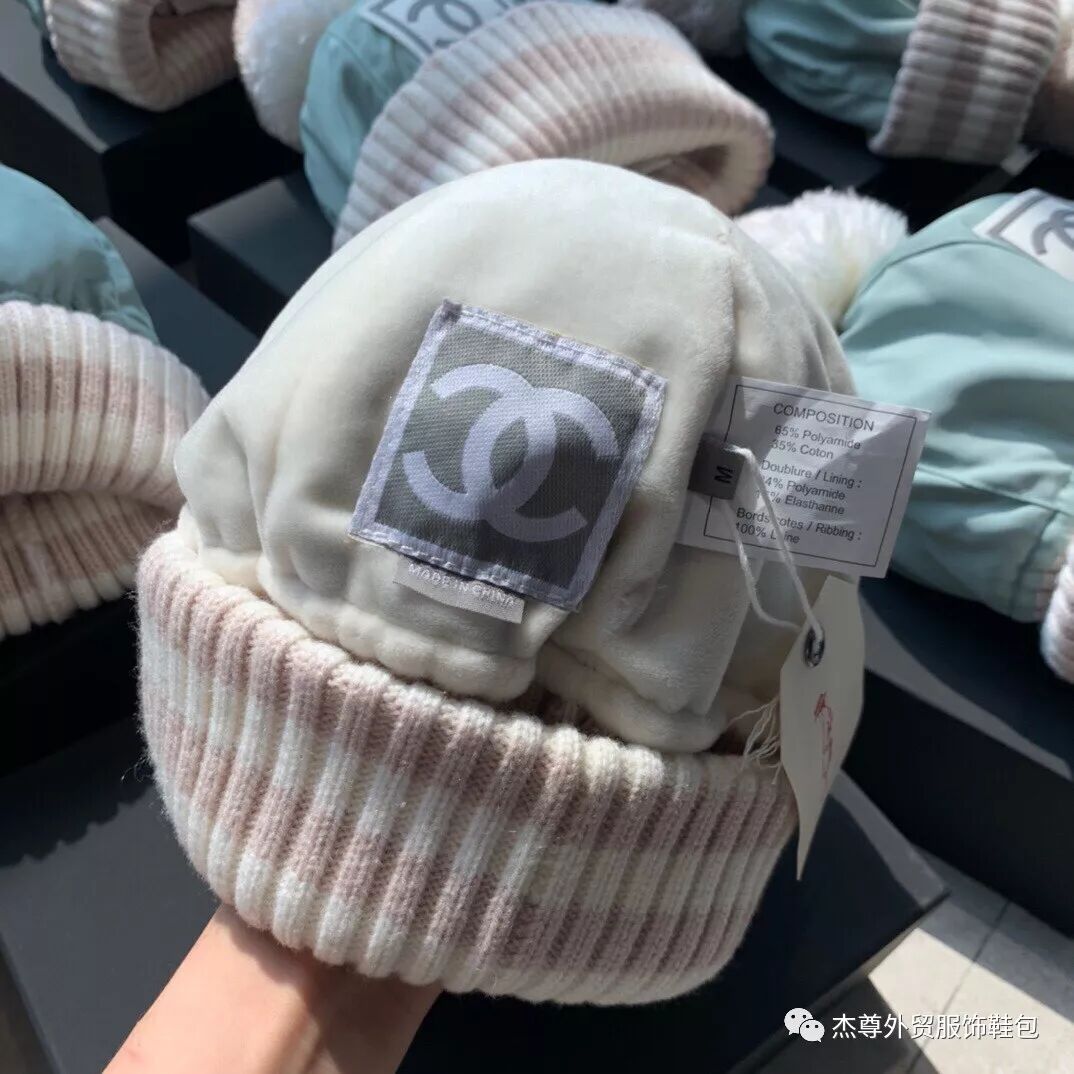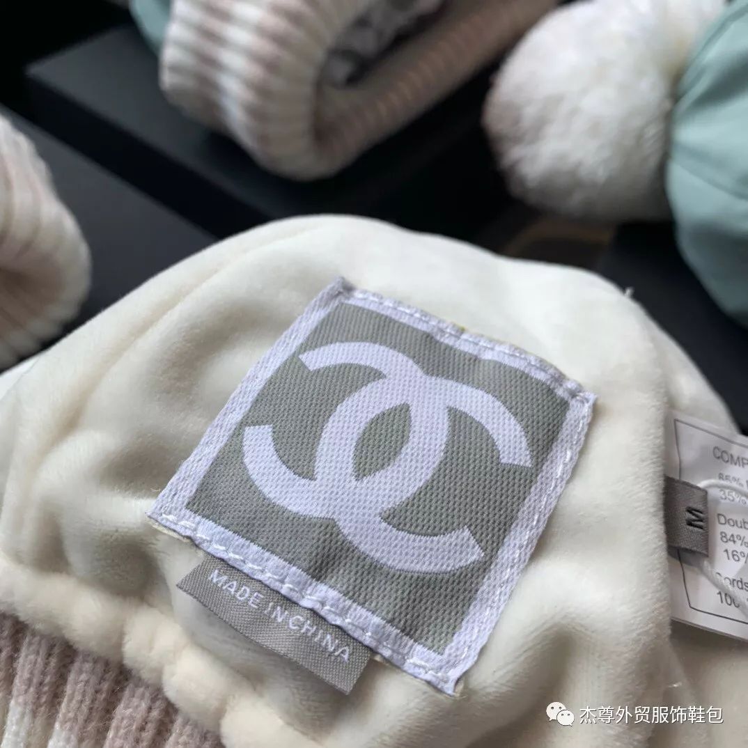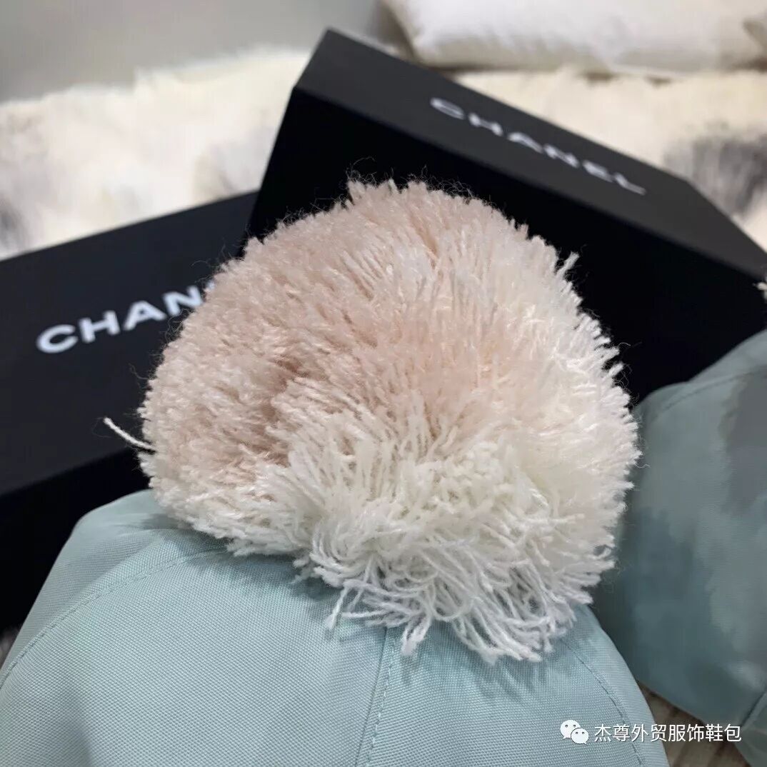 香奈儿特供PVC,双Clogo柔软精致,注意区分市面F品又硬又有异味,另外品牌专用针织毛线?防水帆布。帆布材质六片式拼接,把头围的弧度把握的刚刚好,头顶带有俏皮的小毛球尽显可爱的感觉~