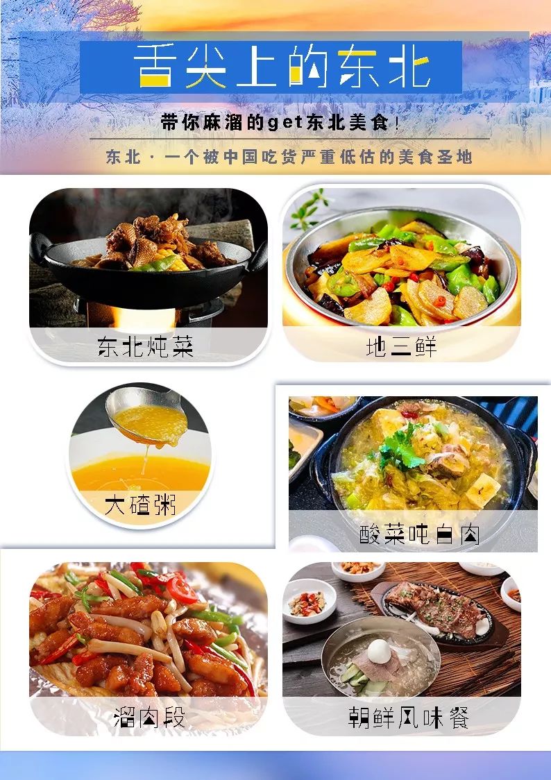 早餐:酒店早午餐:东北特色铁锅炖晚餐:东北山珍宴