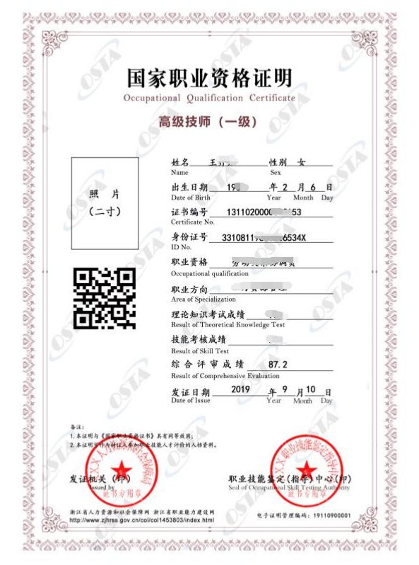 10月24日,浙江省人社厅公开征求《浙江省人力资源和社会保障厅关于推行技能人员国家职业资格证书电子证明的通知》意见,主要内容如下:1、技能人员在浙江参加国家职业资格全国统一鉴定、浙江省职业技能鉴定、技能大赛、企业技能人才自主评价获得国家职业资格证书的,可登录政务服务网查询、打印。2、不再补发或换发纸质证书。3、电子证明与纸质证书具有同等效用,但任何形式的电子再转换版本,不具备同等法律效力。4、社会、用人单位、持证人员可通过全国联网查询系统(网址:http://zscx.osta.org.cn)进行数据查询核验。国家职业资格证明(模板)