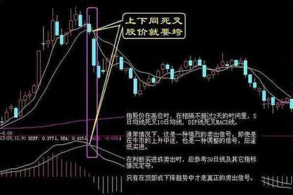 5、股价在高位均线与MACD双双形成死叉股价就要垮,注意股票要卖出,如下图: