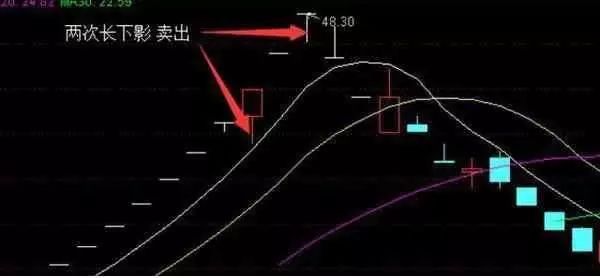 2、第二次长下影线卖出操作要点:这种形态的股价一般连续拉升,非常强势,连续涨停板,在上涨的过程中,会出现过一次长下影线,拉着,股价会继续上涨,并且再一次出现长的下影线,就算当天尾盘是涨停的,也要果断卖出,免得因小失大。