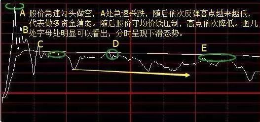 3、价格趋势走在均线下,价格上升并未突破均线且立刻反转下跌,也是卖出信号。