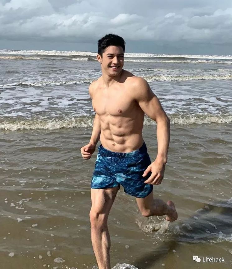白云沙滩海浪,他自由地奔跑着,棱角分明的八块腹肌默默诠释着这个男人的雄性荷尔蒙!