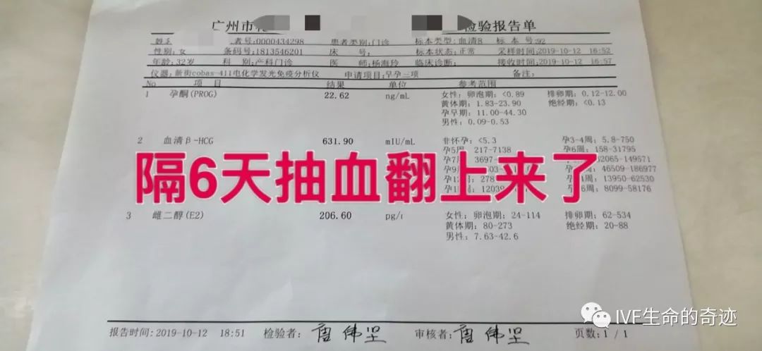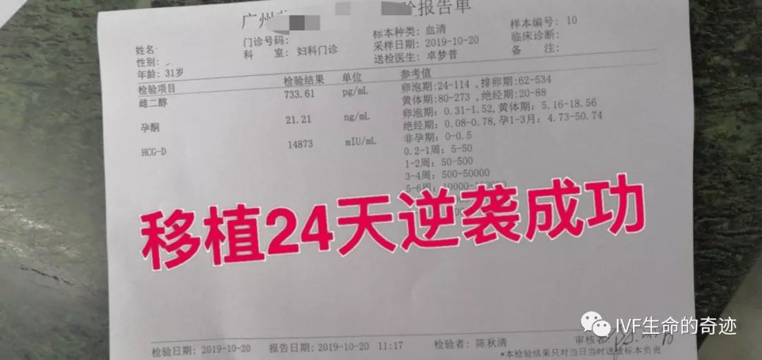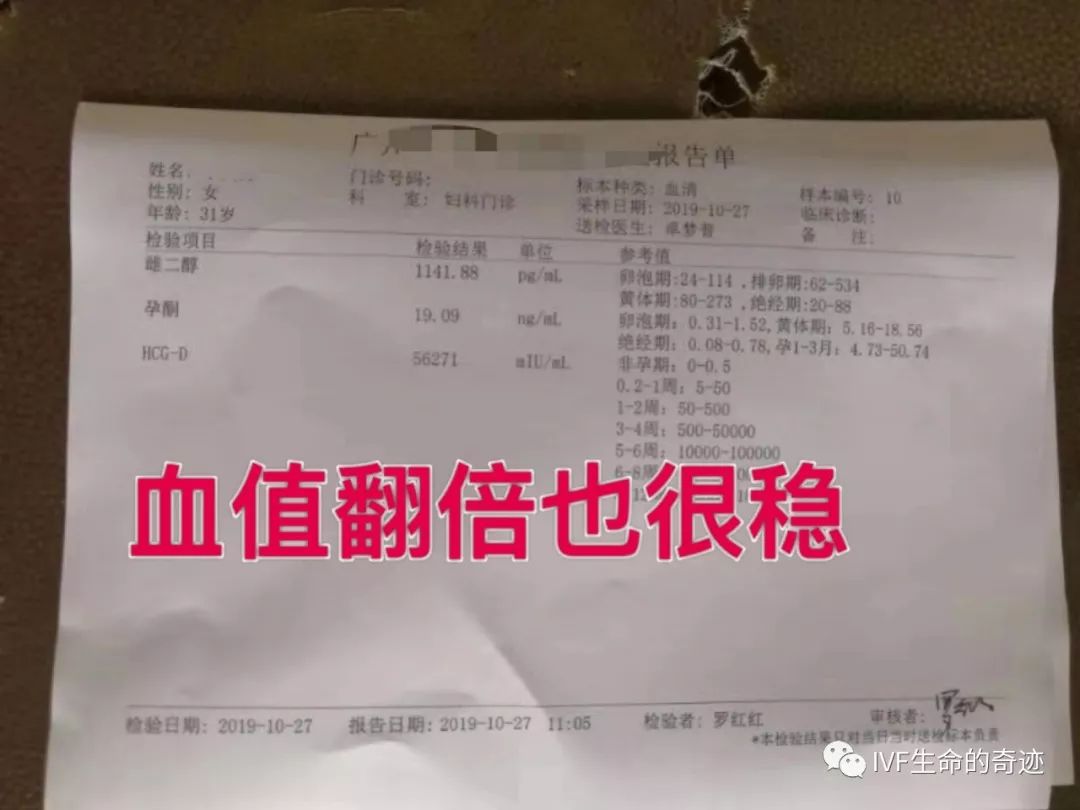 10月20号复查的结果 血值已经翻到 14873了,逆袭成功 因为移植的是两个优胚进去了 好希望是成两个一次搞定双胞胎