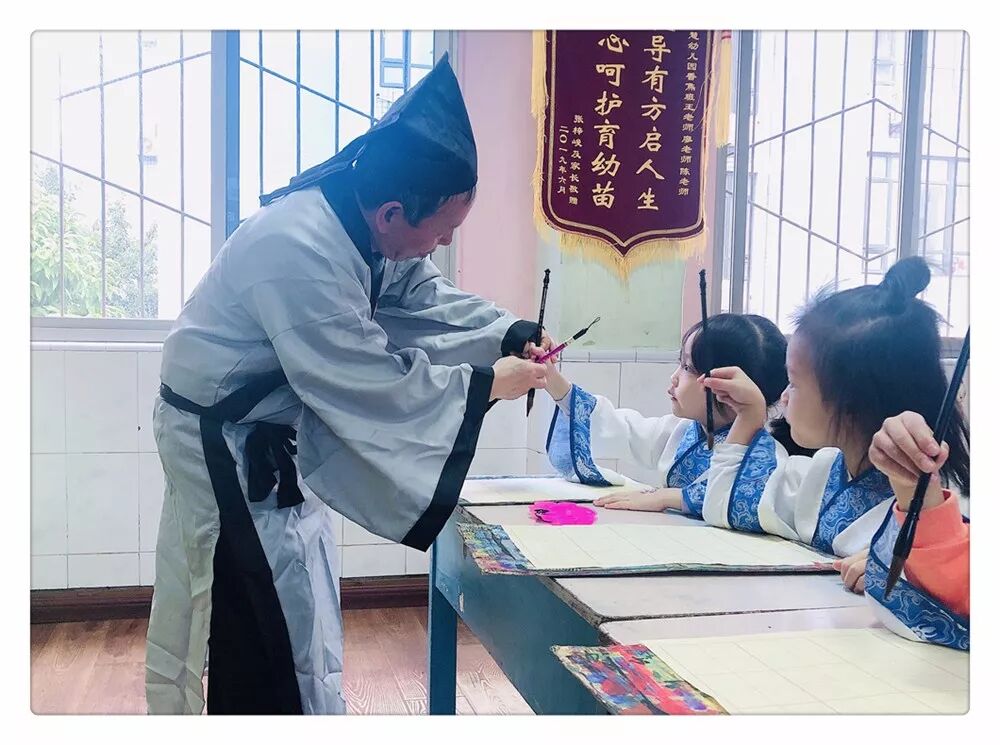 阐释书法精神、传承文化精髓、弘扬民族文化、演绎书法神奇魅力、书写中国软笔书法、传承中国传统文化。结合本月主题教育,早慧渝北园有幸请到了隐藏在家长群中的民间高手——蜜桃班刁欣悦小朋友的爷爷(一位德高望重的书法爷爷)来对孩子们的书法进行教学。