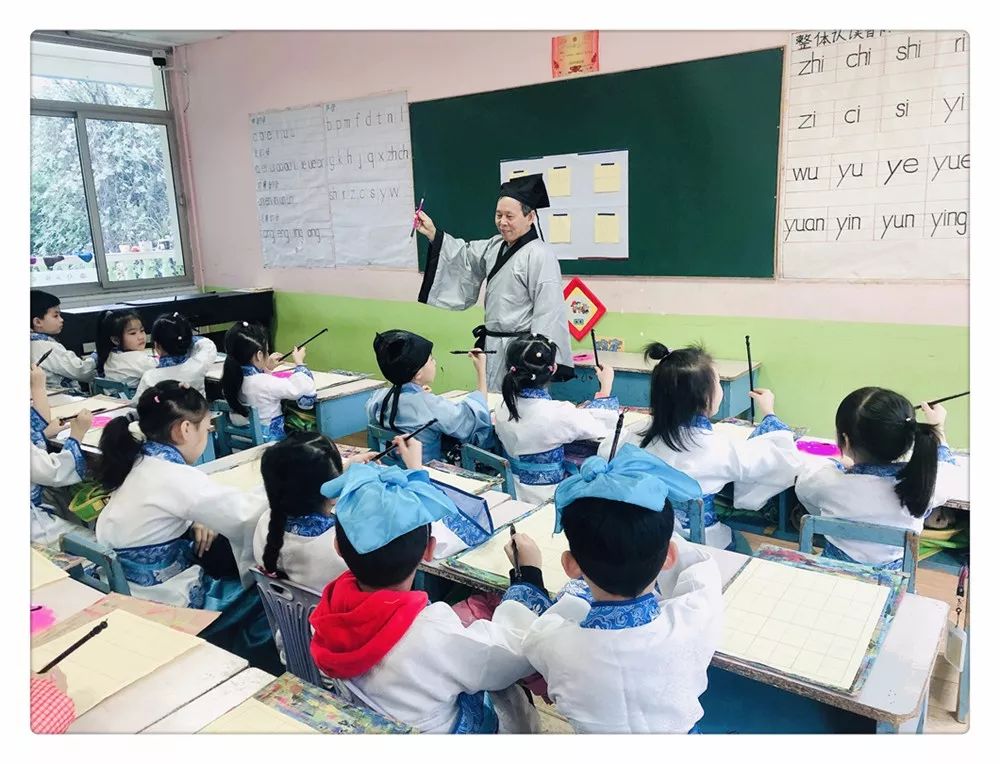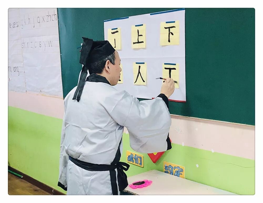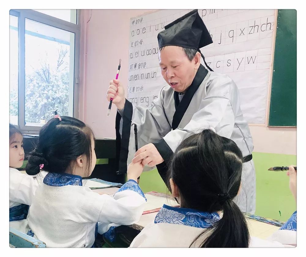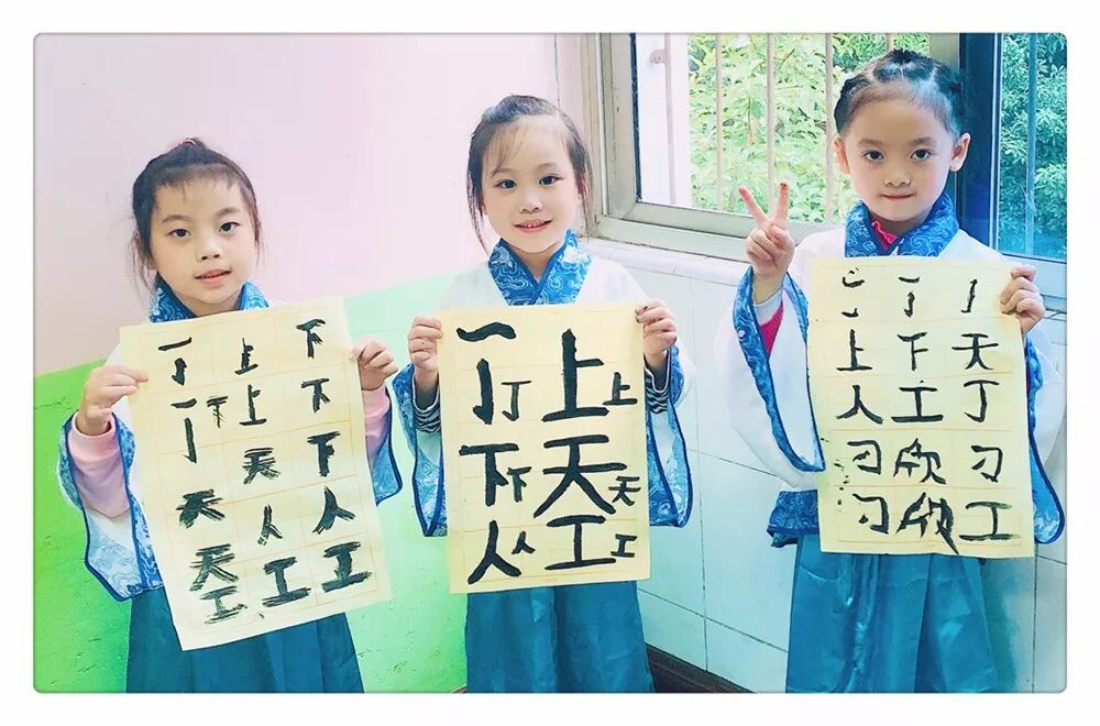 书法爷爷为孩子们精心准备了一场文化盛宴——中国软笔书法。爷爷从握笔方法、蘸墨水、行笔方法、基本笔画、简单汉字书写练习,无不深深吸引着孩子们的好奇心和书写欲望。