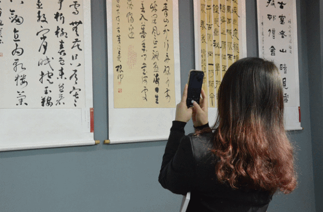 滨沙之城——鄯善县,历史悠久,文化底蕴深厚,是多种文明交汇的故地,是丝绸之路往来交通的重要门户,也是新疆唯一获誉“中国书法之乡”称号的县市。在鄯善县美术馆书法作品展出现场,来自于吐鲁番市两县一区的书法协会会员及爱好者齐聚一堂,共同见证这赋予两地情谊、颂咏时代的书法艺术作品。