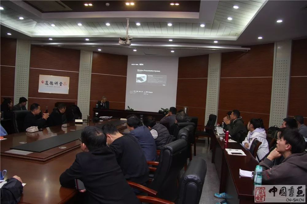 2019年10月27日上午,著名海派书法名家潘良桢先生应邀来徐,作了名为《盛唐书风之丕变》的专题讲座。讲座在徐州汉画像石馆多功能厅举行,江苏省书法家协会副主席、徐州市书法家协会主席马亚、江苏师范大学刘文秋教授等60余名来自全国及徐州书法界的朋友前来聆听了讲座。