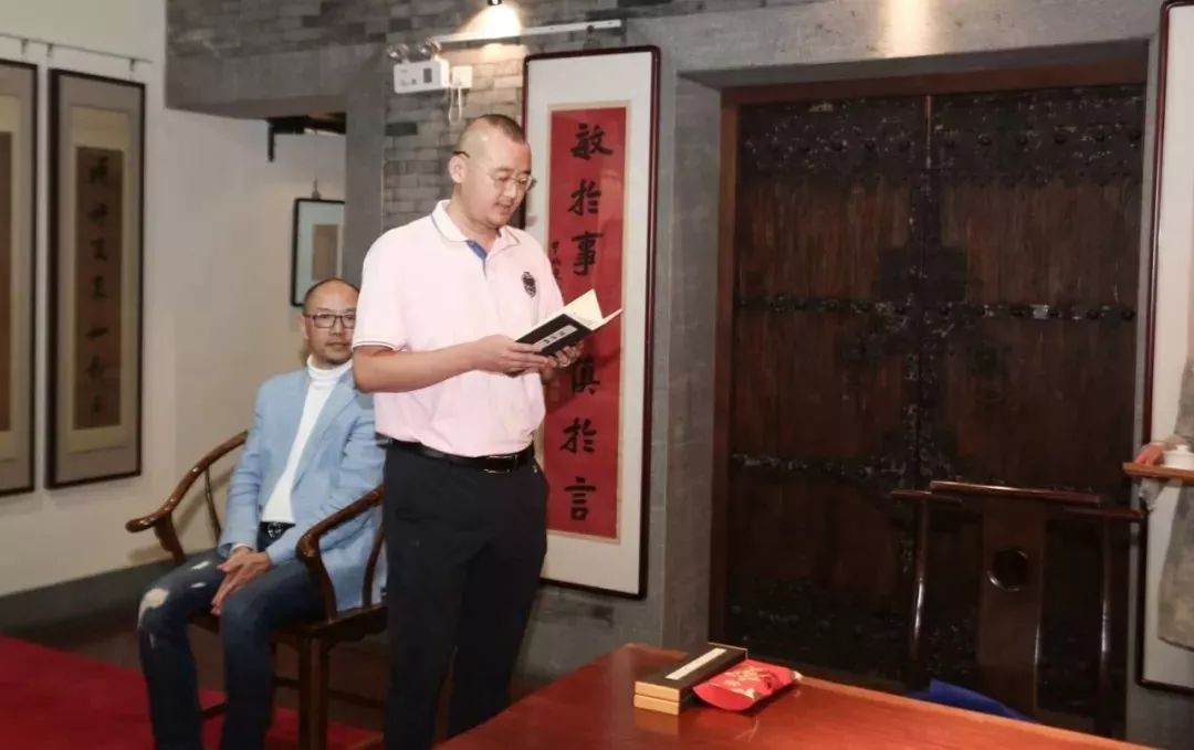 拜师仪式见证人朱晓东朱晓东,字滋德,别署浅人、浅砚斋主。民进成员。上海市书法家协会编辑出版委员会副主任,民进成员。