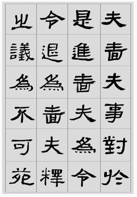 刘文华老师在讲到隶书时说,核心的东西是永远不变的,字再怎么写,关键的部位要控制住,关键部位之外的夸张你不用管他,要靠中间部分来决定中国方块字,任何一个都是这样。凡是夸张的笔画都不是受控制的,不规矩的和不受限制的,古人字形的变化是哪儿来的,实际上是允许夸张的笔画夸张程度的不同引领了风格的不同,同样是在方块中,不同的碑、不同的帖都有一个共同的规律,就是形式美感,其共性部分基本的结构是死的,而只有细微地方的变化,这是一个原则,方块内的不动,而决定字的风格的就是那些可以细微变化的地方夸张的不同,这是一个基本规律。