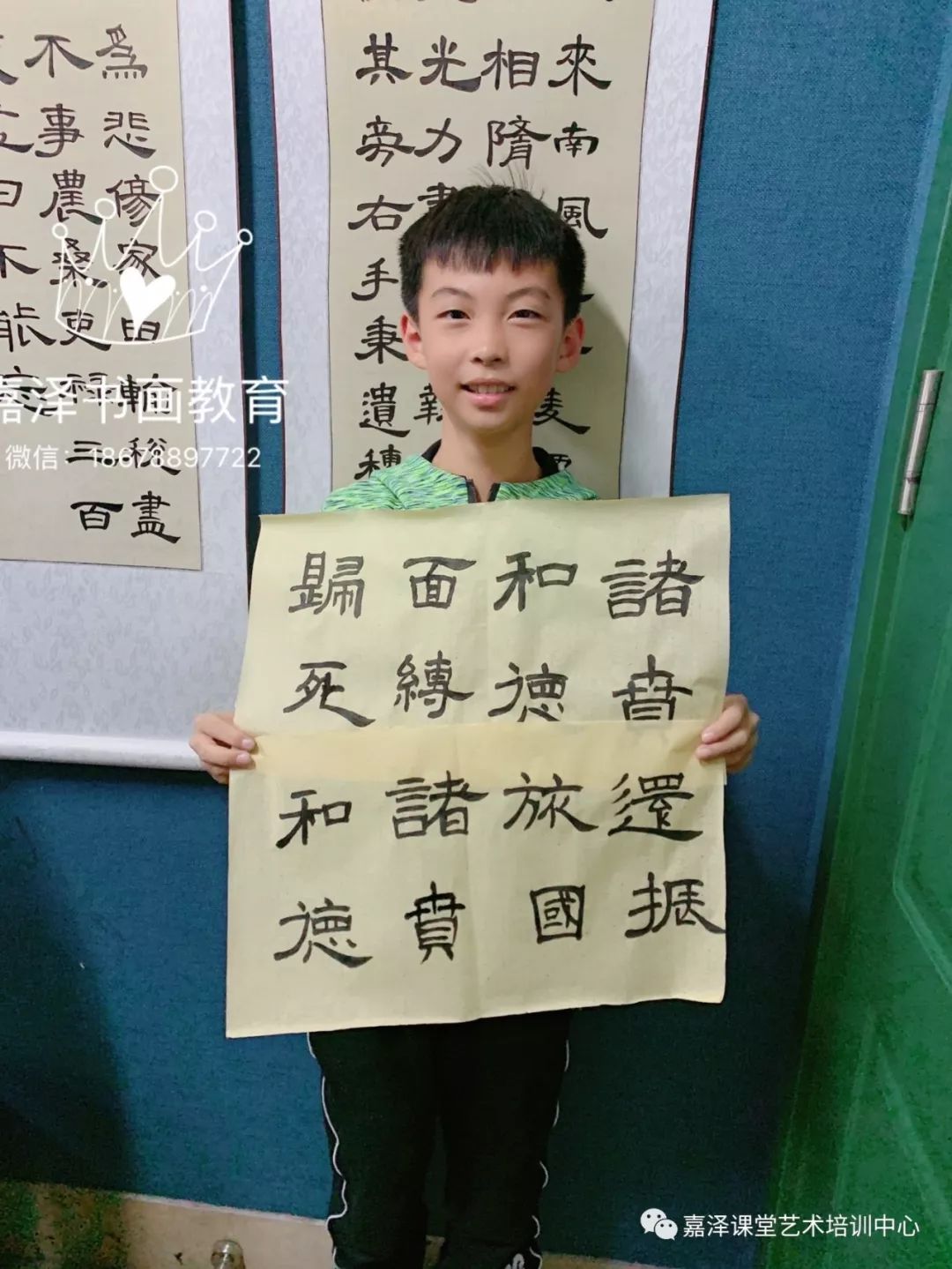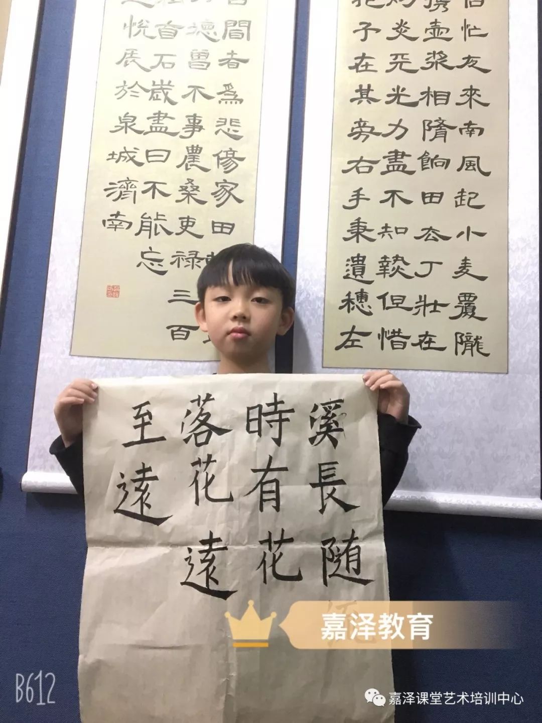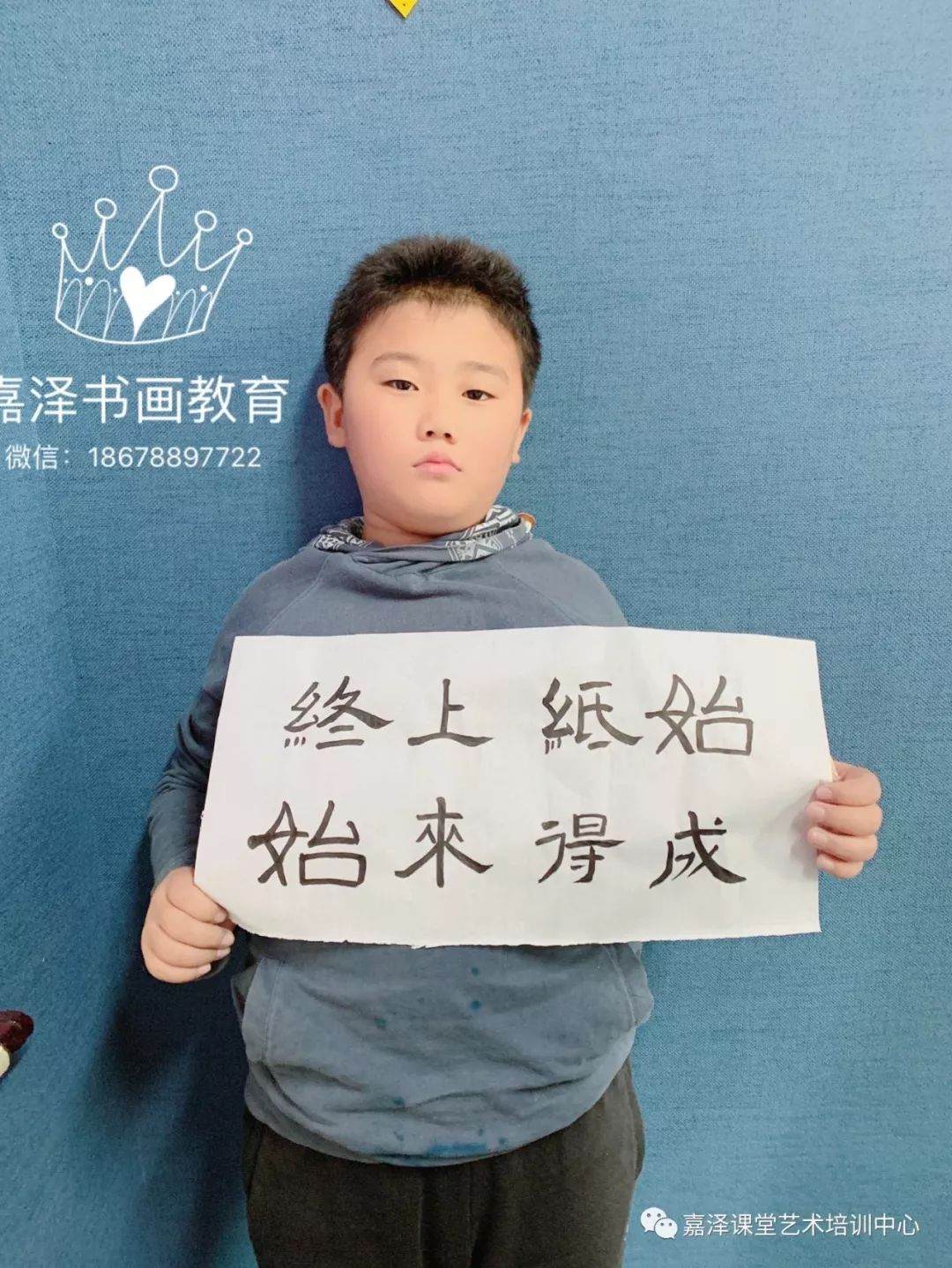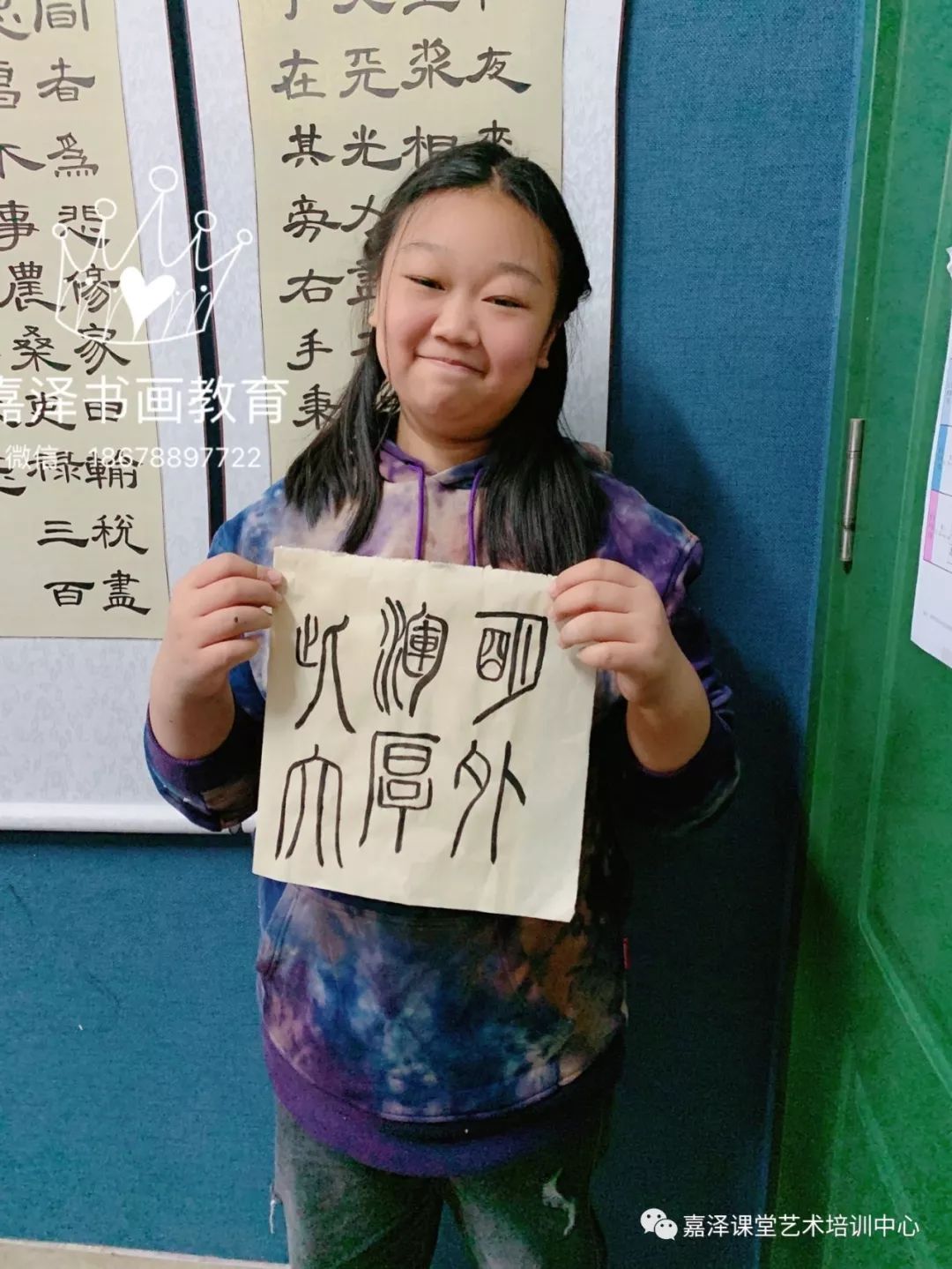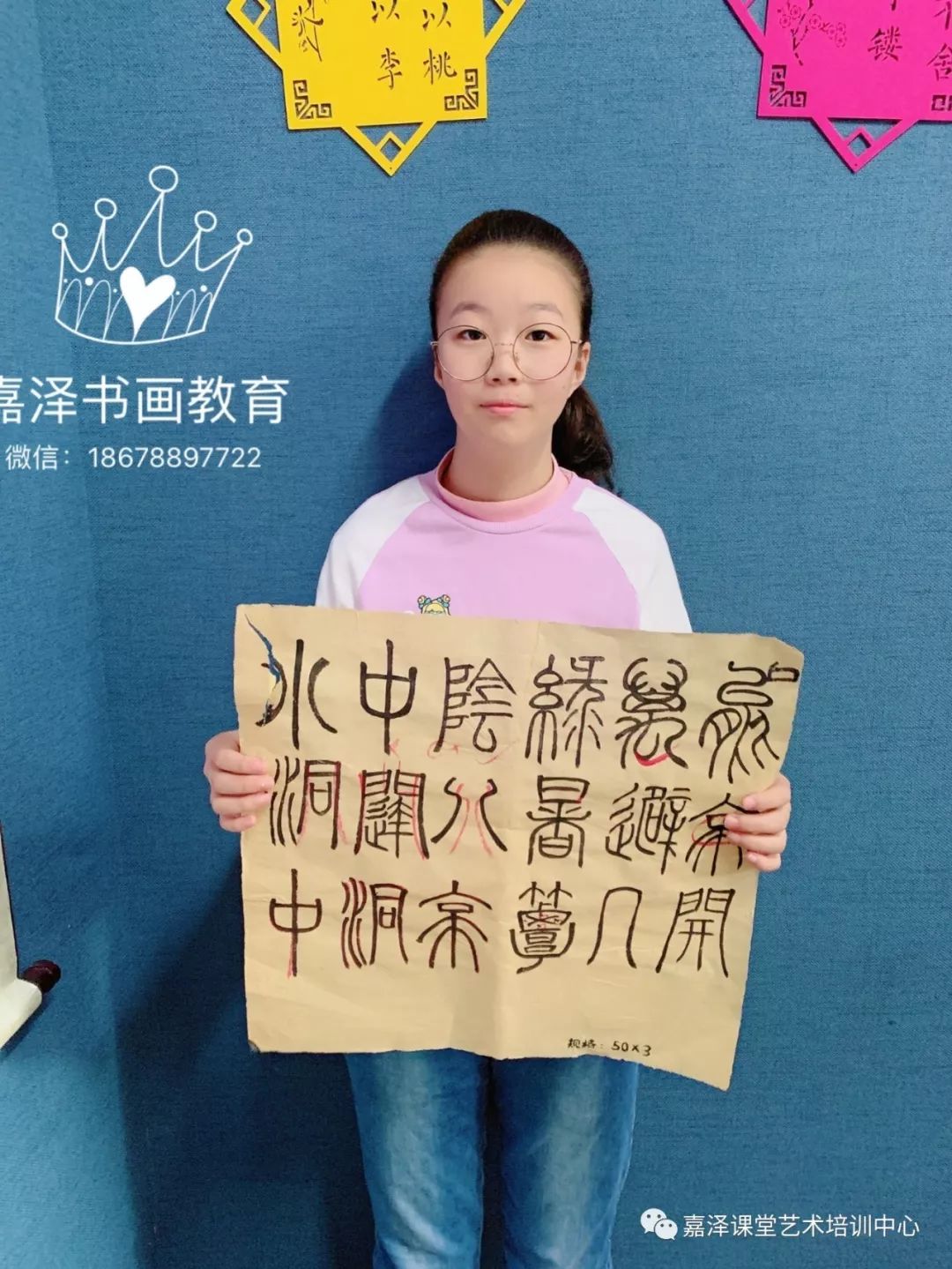 课堂评价:整体上面把握的比较不错,章法还是比较不错的,还需要在注意在加强整体的轻重变化以及空间布白,落款还需要在加强练习,注意动作要到位。继续加油