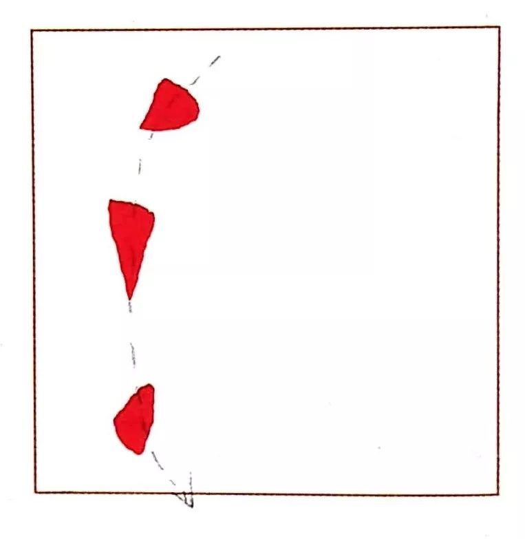 在三点水中,第一个点和第二个点往往会变成出锋点或短撇。第二个点的位置与形态决定了三点水三个笔画之间的离合关系。