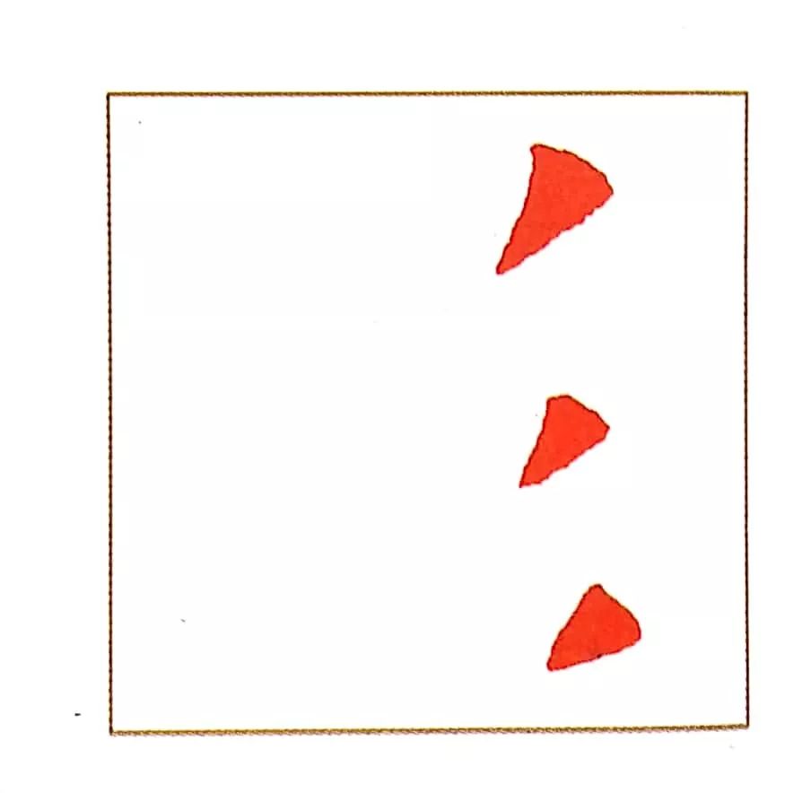 标准的三撇儿是上下依次排列的三个长撇,在例子中三撇儿写成了类似于点的短撇。