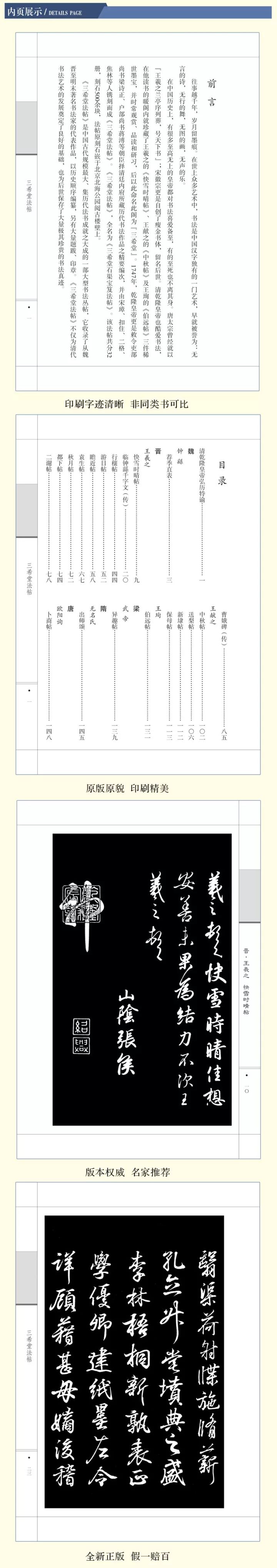 自魏晋至明末书法大家的名帖尽收其中。按年代顺序编次的一部书法通史。作为我国古代最高艺术成就的精品,它是我国古代书法家为我们留下的一份珍贵的文化遗产。