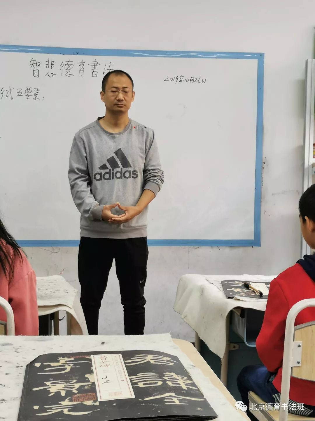 ? ? 2019年10月26日是北京德育书法特长班第十二学期的第五次课。由王耀红老师主讲,霍老师因公差请假,王斌老师代理执行助教。班主任陈老师、教务员刘老师、班老师执行教务工作。
