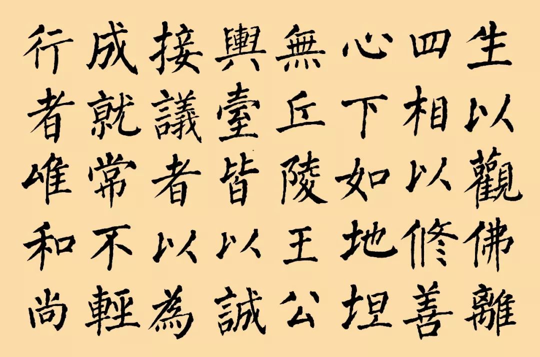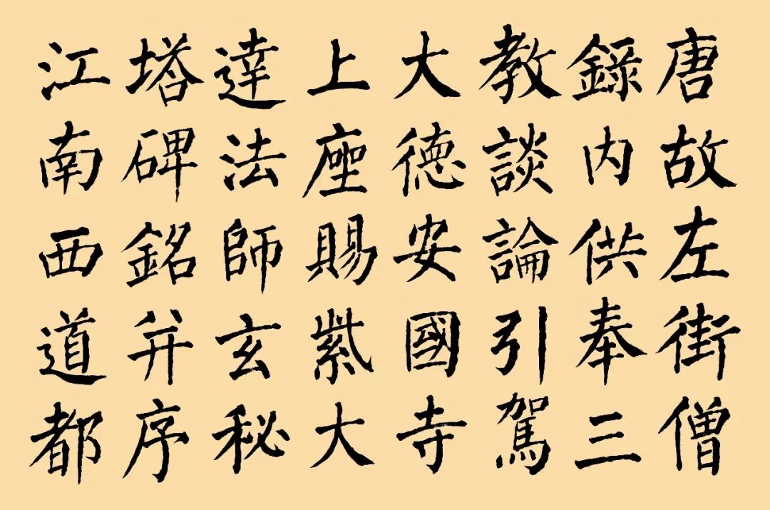 章法:《玄秘塔碑》全篇布局严谨劲健,章法上行间茂密,精妙高雅。左右基本对称,右肩稍高,形成左低右高之势,险中求稳。其字里行间,充满了行与留、曲与直、违与和、动与静、刚与柔、擒与纵、欹与正、虚与实。其劲、其秀,骨强筋健不失肤肉丰润;其姿、其态,天然巧成不失纯正规范。