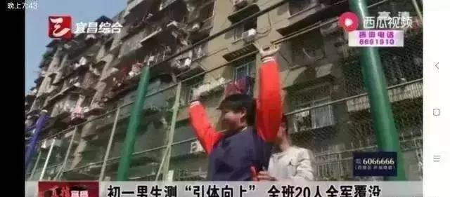 宜昌某中学一个班级做了一项体能测试,20个学生,有两个学生做了2个以上,一个学生做了一个,剩余的一个都做不到,甚至握住单杠后几秒都坚持不了。按照标准,7年级4个及格,8年级5个,9年级6个,满分12个,据体育老师介绍全年级没有一个做到满分,及格的也才7个。宜昌某中学一个班级做了一项体能测试,20个学生,有两个学生做了2个以上,一个学生做了一个,剩余的一个都做不到,甚至握住单杠后几秒都坚持不了。按照标准,7年级4个及格,8年级5个,9年级6个,满分12个,据体育老师介绍全年级没有一个做到满分,及格的也才7个。